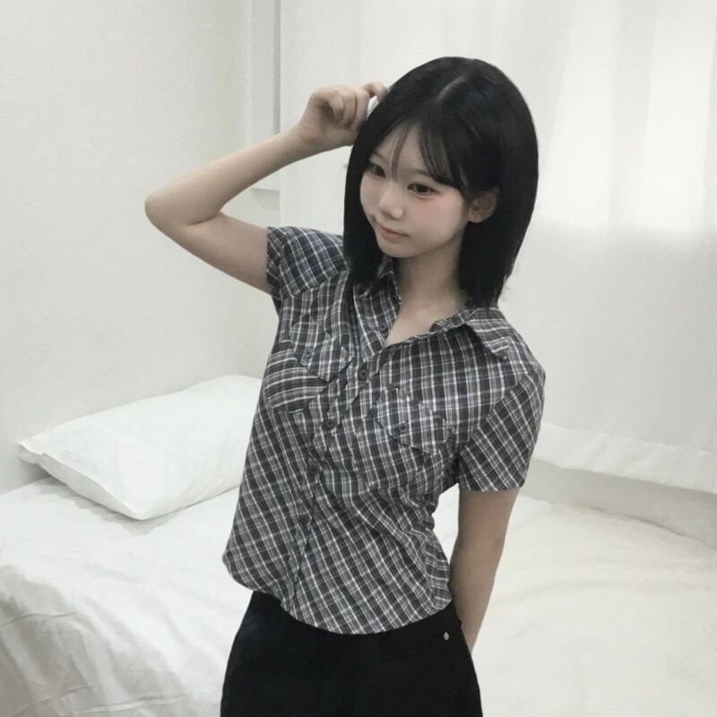123# 체크 포켓 카라 반팔 셔츠 - (2color)