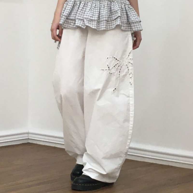 123# 리본 펀칭 와이드 팬츠 - (2color)